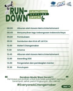 Singkatnya, JAYCA ini kayak incubator ide, tapi produknya bukan startup jualan kopi literan, melainkan anak muda yang siap bikin perubahan sosial.