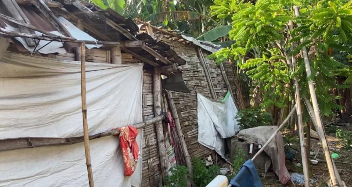 Tapi di luar jam mengajar, ia pulang ke rumah yang nyaris roboh, dengan tembok retak, atap bocor, dan dinding yang cuma bisa bertahan karena diikat niat baik dan banner plastik.